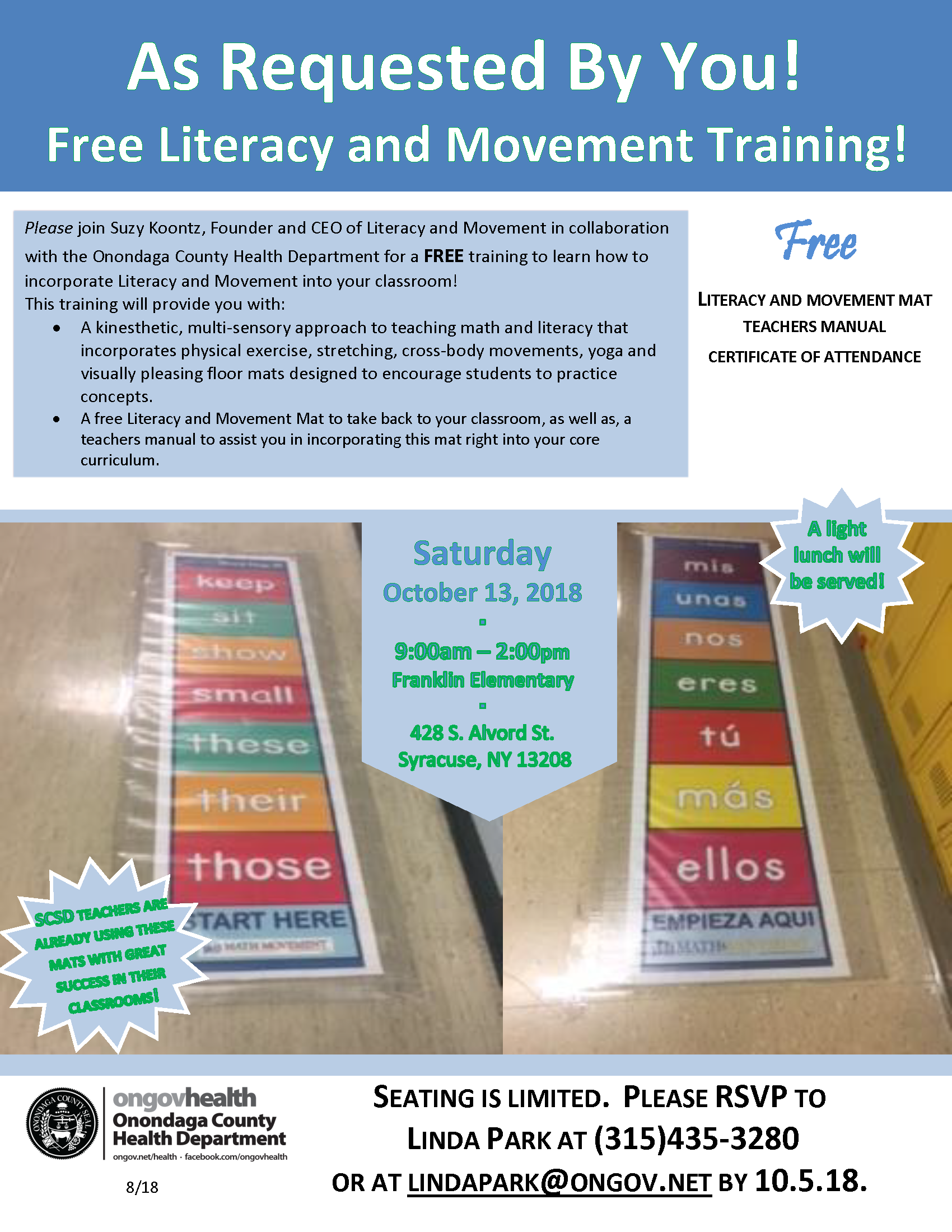 Literacy and Movement Training- October 13th